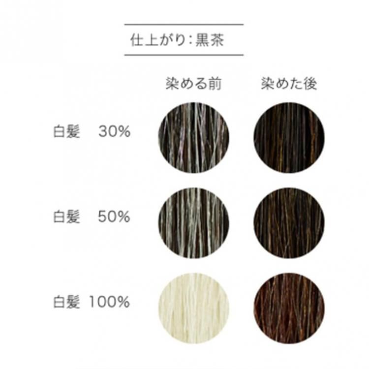 白髪を黒茶の色に染め、同時にトリートメント効果を楽しめます。